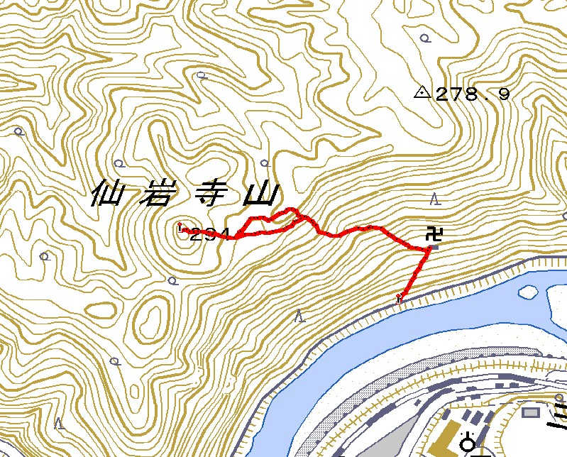 2010年12月18日 仙岩寺参道入口 →0:05→ 仙岩寺 →0:40→ 尾根出会 →0:15→ 山頂 →0:45→ 仙岩寺参道入口 全歩行時間 1時間45分 山口県・広島県・岡山県・鳥取県、各百名山の著者の中島先生、防長山野へのいざないの著者、金光さんと3人で、今年の宿題として残っていた島根県川本町の仙岩寺山へ向かう。今年の5月5日に同じメンバーで江津市の甘南備寺山へ登った後、この仙岩寺山の登山口を確認したが、当時は時間の関係で登山を断念した。 この仙岩寺山は南北朝時代の城跡であり、遺構が残っているかの確認も目的の一つである。また、「仙岩寺の岩清水」は歴史の泉として島根県名水百選に選定されており、この不老長寿の銘水はお土産に丁度良い。 山口県岩国市の玖珂インターから高速道路に乗り、中国自動車道から無料区間の浜田自動車道に入る頃には、少し雨が降り始めた。山陽側は晴れでも山陰へ向かうと雨に遭うことが多いので、やはり・・・と思いながら大朝インターを降りる。