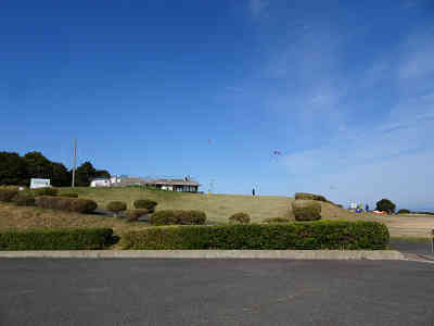 山頂の北に祀られた宮地嶽社に参拝、日本海を見晴らす草原を歩いて駐車地まで引き返した。このとき北には霞みながらも見島を見つけることができた。千畳敷は素晴らしい展望地である。