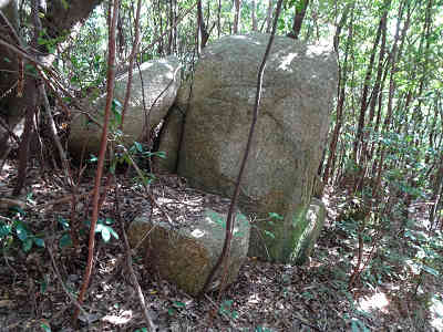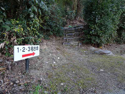 道の左に5号古墳、その先に6号古墳を見学し、元の道に戻って坂を下る。更に夫婦岩の案内を見るがどの岩を指しているのか解らなかった。