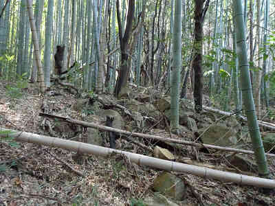 坂を下れば竹林に入り、倒竹などを迂回しながら鞍部へ着き、石の多い場所を迂回し登り返す。踏み跡ははっきりしており、小ピークを通過し道なりに進む。