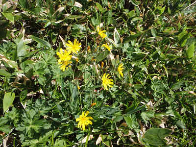 間もなくベンチの置かれた休憩所を通過、至仏山への案内を確認して一気に高度を上げる。前方を眺めればなんとも急な坂が続いている。ただし、横木の階段が整備されているので、見た目ほどの苦労はなく、快適に階段を登ることができる。休むことなく高度を上げているが、背後に広がる展望は、階段を一歩登る毎に格段に広がる。 見た目の美しい蛇紋岩の続く急登をしばらく辛抱していれば、やがて木道の整備された山頂や尾瀬ヶ原を見晴らす展望地へ出る。この先からは山頂方面を眺めながらゆっくり木道を登ることになる。周囲に背の高い樹林はなく、快適な登山道を進んでいると、木道の周囲にいろいろな花を観賞、この付近が高天原と言われるところだろう。