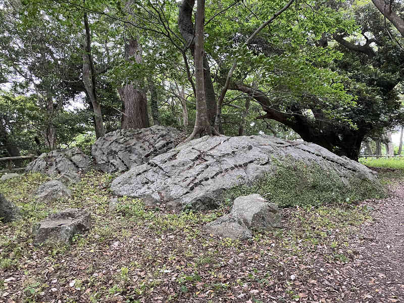 直接萩城跡には入らず、お堀越しに指月山の写真を撮りながら西へ進み八間矢倉跡の前を通過、この先を回り込んで萩城跡に入る。少し北へ移動すると杖の置かれた指月山登山口に到着、山頂まで730mの案内を確認してすぐに登山道に入る。