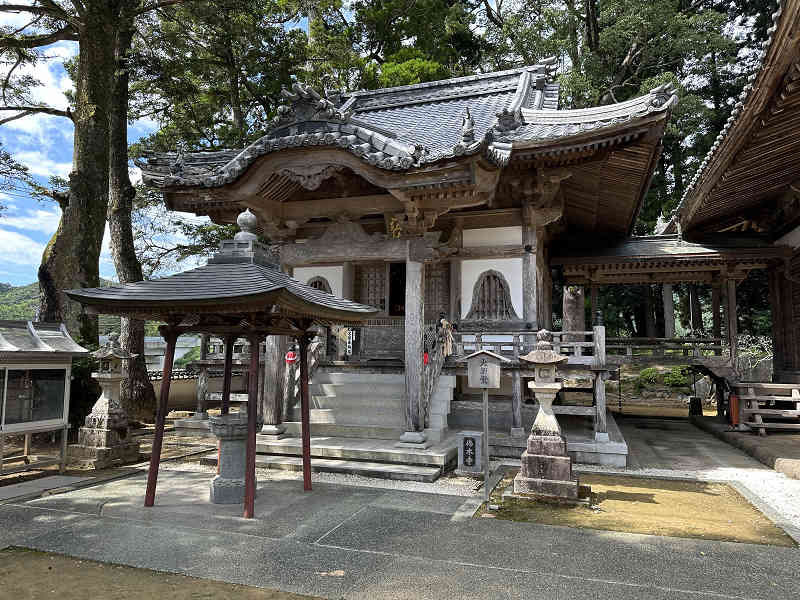 四国八十八ヶ所霊場 弘法大師の足跡を訪ねる巡礼の旅 第42番札所の仏木寺へ参拝。立派な仁王門を潜り、弘法大師像に出会いました。わずかな坂を登って七福神に参拝し、その先に建つ茅葺き屋根の鐘楼を見学しました。今時茅葺き屋根は珍しいですね。 境内に入り地蔵堂、聖徳太子堂を見学して本堂に参拝。本堂の左に建つ大師堂に参拝しました。