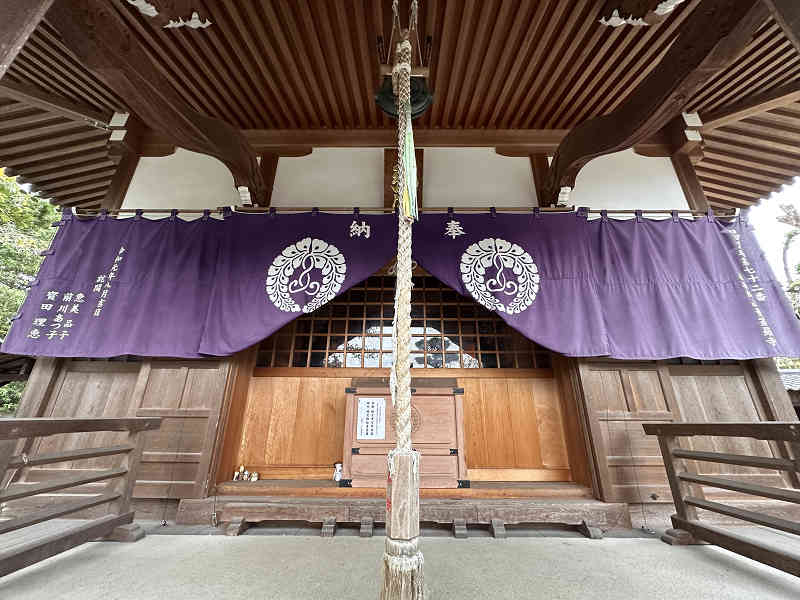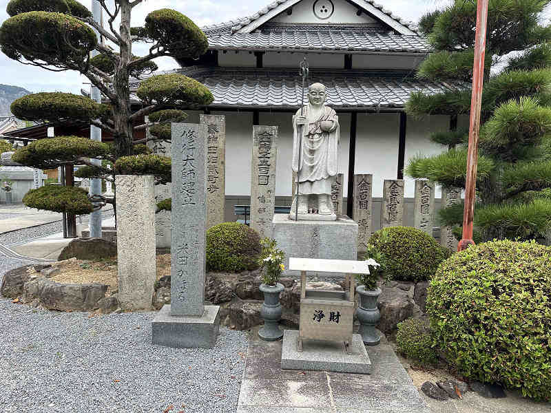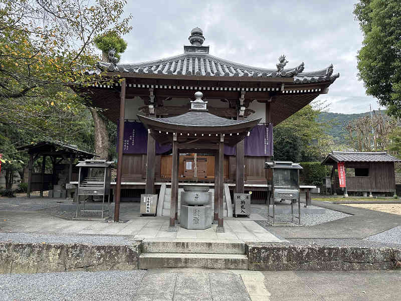 四国八十八ヶ所霊場 弘法大師の足跡を訪ねる巡礼の旅 第72番札所の曼荼羅寺へ参拝、ご本尊は大日如来です。仁王門を潜るとんの裏には大わらじが奉納されていました。旧本堂の鬼瓦や延命地蔵尊、修行大師像、大日如来像を見学して本堂へ参拝しました。 本堂の手前で西行の昼寝石を見学し、大師堂へ移動、大師堂に参拝しました。境内では観音堂、護摩堂、八幡宮、笠松大師に参拝し、鐘楼を見学しました。