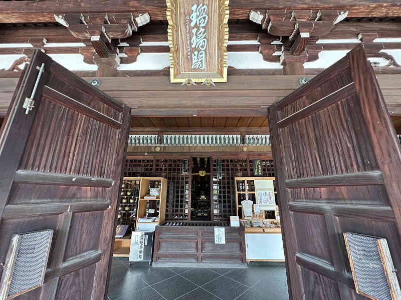 四国八十八ヶ所霊場 弘法大師の足跡を訪ねる巡礼の旅 第76番札所の金倉寺へ参拝、ご本尊は薬師如来です。七福神に迎えられ、迫力ある仁王像を見学し仁王門をくぐります。境内に入り乃木将軍妻返しの松を見学、本堂に向かい、願いながら回すと願いが叶うと言われる「願供養念珠」を回しました。 次に大師堂へ移動し大師堂に参拝後、観音堂、鬼子母神の祀られた訶利帝堂に参拝しました。境内に置かれた不動明王像も鐘楼も見学しました。