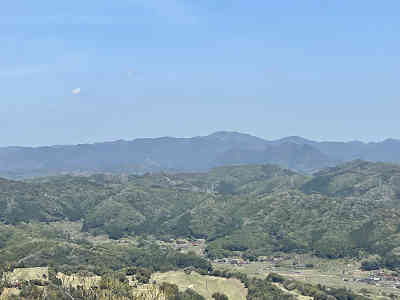 この広場の中には寝仏、ガン封じ・ボケ封じ・厄除け観音なども置かれていた。慈母観音像建立記念碑には、「この法師ヶ岳山頂に慈母観音像を建立した思い、ソーラーパネル設置」などについて記されていた。慈母観音像の下へ続く階段を登ると、先ほど四熊ヶ岳の山頂先の鉄塔から眺めた以上の展望が広がっていた。石ヶ岳、要害岳、狗留孫山、白石山、大平山など時間の経つのを忘れてしまうほどの大展望が素晴らしい。