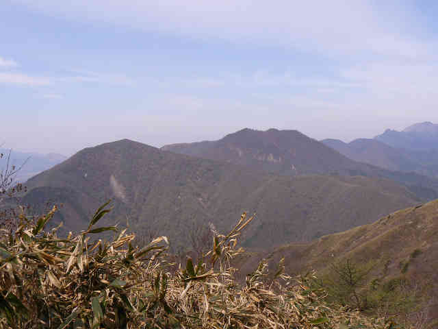 雲居平から眺める北方面の展望 雲居平から前方には小さく標識が見えるのだが、このあたりの足下にカタクリを発見、初めて野中に咲くカタクリを見つけて感激、背後の登山者に道を譲りカタクリに夢中になる。