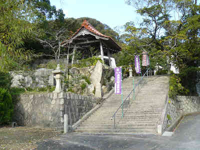 更に踏切を渡り、厚東川に掛かる持世寺橋を渡って左折、持世寺温泉手前で「霜降城跡登山口」の案内を確認して分岐を右折する。そのまま道なりに南へ進み、行き止まりの車止め付近にバイクを配置する。なお、登山の際にこの持世寺コースを採る場合、行き止まり地点の手前に数台の駐車地が用意されている。さて、私は中山観音コースを採るため、登山口の中山観音広福寺へ向かう。