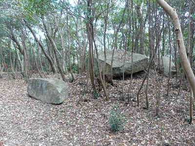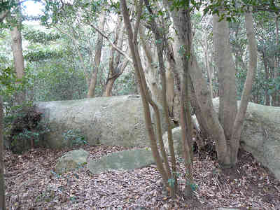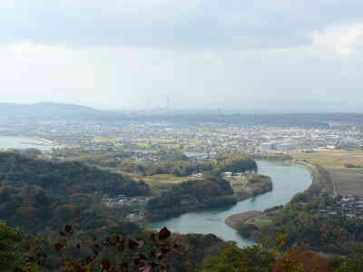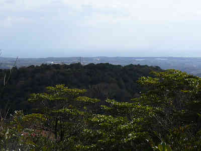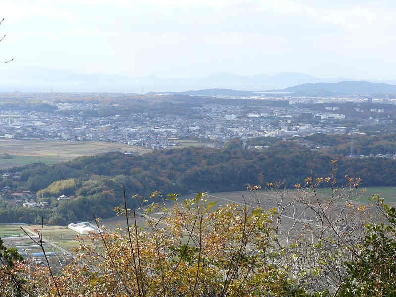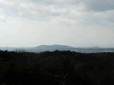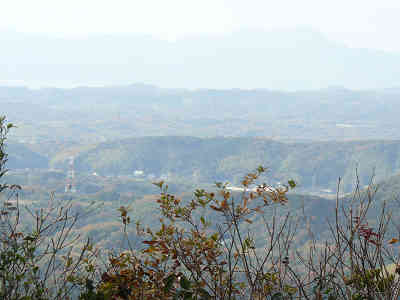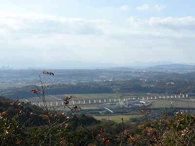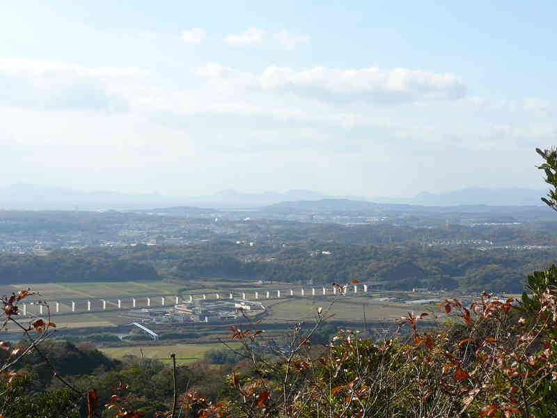 やがて尾根へ着けば、進路は左(北東)方向へ変わり、平坦な尾根道を進む。周囲は自然林に覆われ、快適な尾根道歩きが続く。途中の細長い岩の上に立てば、急に展望が開け、眼下には山陽小野田の市街地が広がり、遠くには関門橋が海の上に浮かんでいるように見える。このような予期せぬ展望は、大歓迎である。