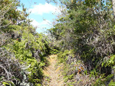 緩やかな傾斜の坂を進み、左側が崩落しそうな道を進むと、左へ田代平・田代池へ向かう道が分岐する。私はこの分岐に入り、田代峠へ向かうことにした。この分岐に入れば、いままでの広い遊歩道からいわゆる登山道となる。この先からは踏み跡は確かだが、一気に尾根へ向かうため、ジグザグに高度をかせぐ。