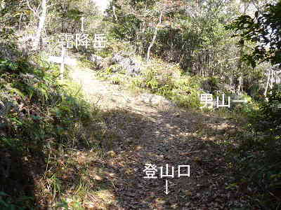 鳥越池から少し右方向へ向かうと分岐標識が立ち、直進方向は鳥越広場・キャンプ場方面だが、ここは前城・霜降岳の案内に従い左折する。この先よりしばらく登りが続き、足下は花崗岩の風化した滑りやすい土質となる。風化した花崗岩を眺めながら高度を上げると、背後には宇部市街の展望が広がる。このあたり、とても明るい登山道なので、少しの傾斜も気にならない。