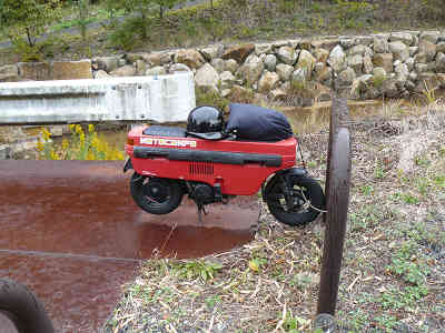 バイクを組み立て、防寒具を着込んで登山口を出発。持世寺跡を通過し、そのまま厚東川を右に見ながらバイクは快調に進む。やがて中山観音前を通過し、駐車地の携帯電話のアンテナ前に到着した。バイクによる周回時間は丁度30分、これは歩くわけには行かない距離である。今回の登山は、モトコンポの周回を試す意味もあったが、これは非常に効果のある乗り物であることを再認識した。