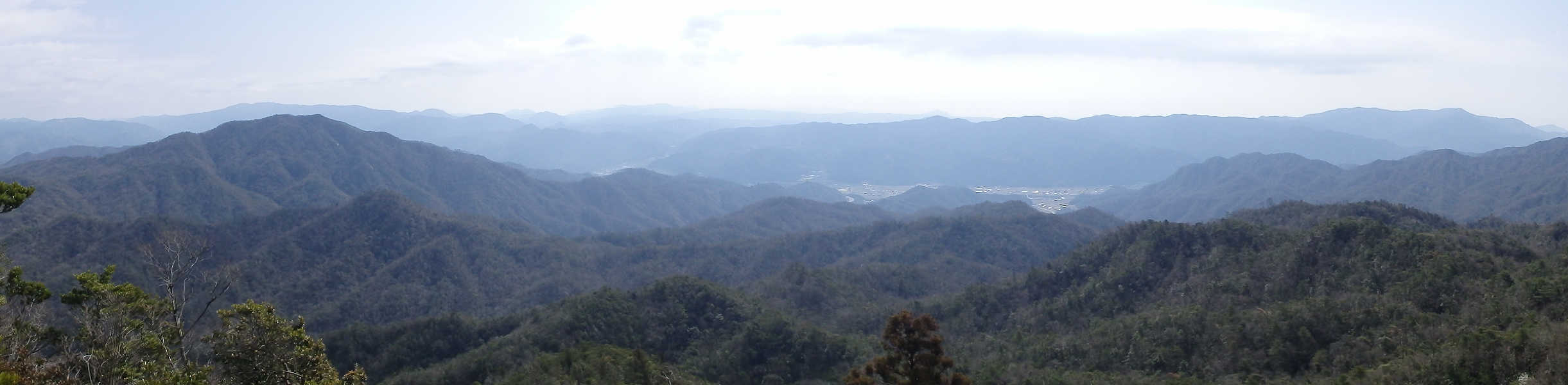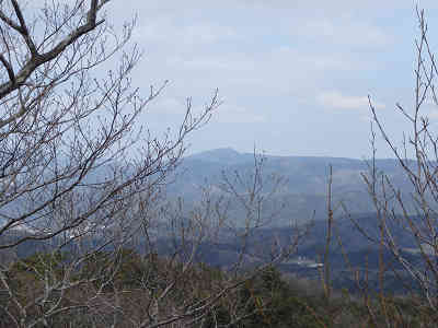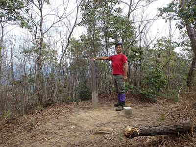 さて、展望地から西へ向かえば、三等三角点の置かれた白石山の山頂へ到着する。山頂からは周囲の木々の背が高く、展望は樹間越しである。山頂から少し北へ移動すると、展望広がる大岩があり、岩上に立つと眼下に出発地点の夏焼地区、北西に特徴的な山容の龍門岳とその下には国際通信のパラボラアンテナ、北には物見ヶ岳と高羽ヶ岳など、山口県の名山が続く。 この岩上に座り、お弁当を食べながら展望を眺めるのも悪くは無いが、丸っこい岩なのでお弁当などを広げていると、下に落ちかねない。さて、山頂に引き返し今度は切り開かれた西へ向かう。こちらには蕎麦ヶ岳と真田ヶ岳がすぐ近くにそびえており、岩上でお弁当を広げることができそうだ。