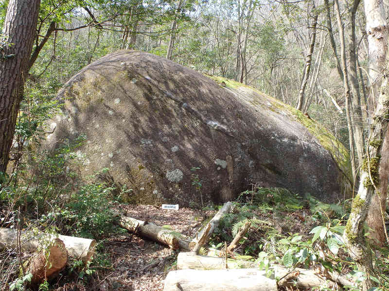 馬の鞍岩・龍駄の岩 左右にシダの茂る道を辿り、少しずつ高度を上げていると、前方に大岩群が続いている。先ず目の前に現れたのが馬の鞍岩・龍駄の岩、とても大きくてカメラのサイズ以上で、前回大きいと感じた岩は間違いなく大きい。