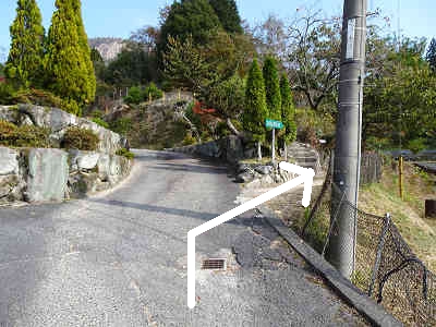 集会所前から右に白滝山の岩滝、左に大師山の尖峰を眺めて登山開始。左右の分岐は右が白滝山、左は大師山で大師山登山口までは車道を1qと案内されている。分岐の先に設置されている白滝山・大師山登山ルートマップには代表的なコースとして3コースが案内されていた。Aコース:集会所・白滝山・大師山・八十八ヶ所・集会所、所要時間約3時間、Bコース:集会所・白滝山・白滝山グラウンド・集会所、所要時間約2時間30分、Cコース:駐車場・白滝山グラウンド・白滝山(折り返し)・駐車場、所要時間約2時間30分で、いずれも魅力あふれるコースである。ただし、大師山から白滝山への周回コースが無いのは、最初の1q程度の車道歩きが敬遠されるからかも知れない。