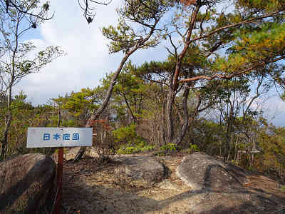 更に大師山へ向かっていると日本庭園が現れた。松の木の多い庭園風園地で大師山へ向って松並木が続いている。すぐに見晴らし岩に着き大師山、美和の街並み白滝山などを眺める。ただし、美和方面は霞んでいた。