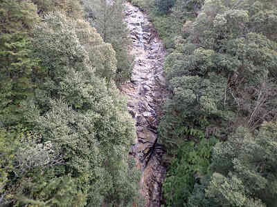 そのまま道なりにほんのわずか進むと、前方に大岩が見えてきた。この岩場の中に入ると眼下に滑滝が細長く続いていた。これはすごい滑滝、これを眺めるだけでもこの地に来た甲斐がある。
