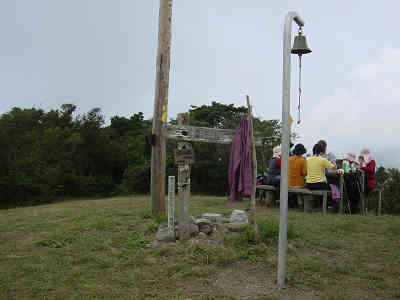 牝鋤先山の山頂から20分程度で牡鋤先山山頂に到着した。牝鋤先山より90m近く高い場所の展望を楽しみにしていたが生憎の霞でさっぱり展望がない。平らな山頂にてゆっくりと記念撮影をした後竜王山に向かう。