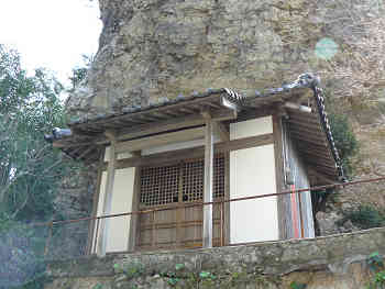 堅岩山へのお参りを済ませ県道に戻る。もう少し西に進めば左手に豪快な立岩が見えてきた。大きな立岩を眺め、仕合わせ祈願所に到着。堅岩山馬頭観世音菩薩にお参りした。