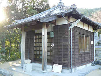札所から海岸線まで下り、県道を右折して西へ向かえば、すぐ右手上に第83番札所泉福寺が見えてきた。県道をもう少し進んで分岐を右折する。石段を登ればすぐに泉福寺に到着、大師堂の横には観音堂が建っている。