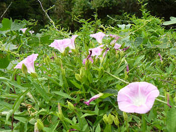 途中に咲く花が美しく、最初から足が止まる。大師堂に参拝し最初の般若心経を読み大師堂を出発。坂道を下り、再び登り返して老人憩いの家まで戻る。分岐を左折し県道103号大島橘線を進み、次の札所の77番遍照庵へ向かう。この札所への行程は大島八十八ヶ所の中でも有数の難所と思われる。