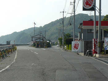 海好庵に参拝後は札所左手の道を南に向かい、海岸線を右折する。そのまま西に向かって進めば県道に合流、県道を左折して沖浦へ向かう。背後には津海木地区の海岸線が広がり美しい。