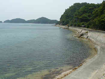 霊光庵から坂道を下り十字路を右折、舗装路を西へ向かってしばらく進む。間もなく県道に合流するのでT字路を右折し、海岸線を西へ向かう。間もなく周防大泊バス停を過ごし、峠を越えれば吉浦集落が見えてくる。吉浦バス停を過ごし、この先のカーブミラーの分岐を右折、左には吉浦区民館を過ごす。緩やかに左カーブを描きながら進めば、左手に第5番札所地蔵寺が見えてくる。