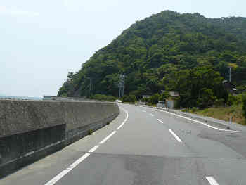 | 海岸線を右折し西へ向かう | 右手に7番の奥の院が見えてくる |