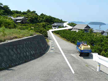 清水庵を出発し、そのまま坂道を登る。緩やかに左カーブを描きながら進めば、カーブミラーの立つ交差点に着くのでこの分岐を直進し、坂道を下る。右手に沖浦簡易水道の施設を過ごせば、正面に交差点が現れる。この交差点も直進し、次の分岐を左折。緩やかな坂道を道なりに下りて行けば、第13番札所心定庵に到着、この札所は民家の中に建っている。