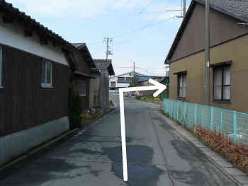 周防平野バス停を通過し、右手にJAマルトウ生活センターを見る。また。左手には周防大島出身の作詞家、星野哲朗の記念館が建っている。更に国道を東に進み、バス停森野小学校前に設置された歩道橋手前を右折、突き当たりを左折する。