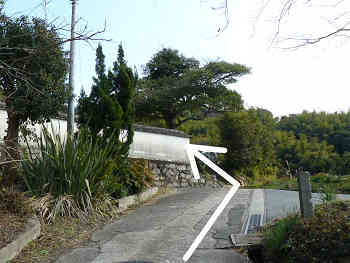 | 分岐を右折 | 舗装路終点付近が薬師堂 |