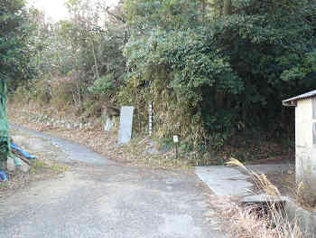 雄峰山を出発、向かって右手のコンクリート舗装道を下りて行けば「建武弐年宝篋印塔」の案内標識が設置してあるので、案内板に従って少し坂を登る。坂を登ればすぐに山口県では最も古い「在銘宝篋印塔」を眺めることが出来る。