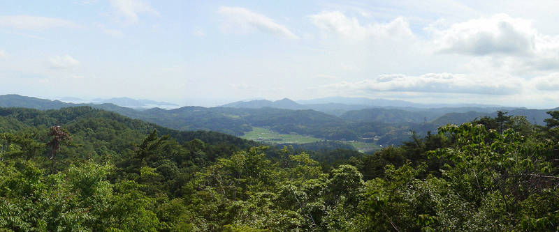北から東方面の展望 東方面には美和町の白滝山からその奥には広島の山々が続いており、南東方面には岩国の高照寺山・柳井の氷室岳のアンテナ山がはっきりと見え、手前に旧熊毛町八代の烏帽子岳、その右手には先々週登った下松の大将軍山も山頂の形で確認することができた。一つ一つの山をじっくりと観察していたら思わぬ長居をしてしまい、いつの間にか1時間以上も山頂に留まっていた。