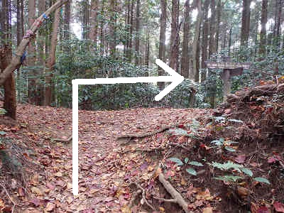 地元の方がきつい坂と説明された意味が分かった。きつい下り坂だが、登りと違って慎重に下れば、一気に高度が下がる事の方が楽しい。赤いプラスチック板の目印を確認しながら坂を下り、植林帯の中を通過すれば、紅葉の美しい公園の一角に出る。
