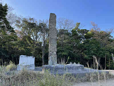 左右に灯篭を従えた毘売塚は海の方を向いていた。案内によればこの場所は島根県指定史跡の毘売塚古墳で、5世紀代に築かれた全長42mの前方後円墳である。毘売塚を出発し木の鳥居を潜り、坂を下れば毘売崎伝承の案内が立っていた。
