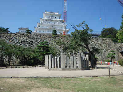 姫路城 修復中の姫路城(クリックで拡大) 天守閣修復中の姫路城