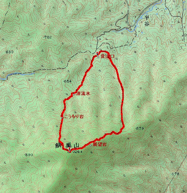 2009年9月23日 登山口 →0:15→ 三合目 →0:20→ こうもり岩 →0:30→ 山頂 →0:05→ 展望岩 →0:52→ 大滝 →0:08→ 登山口 全歩行時間 2時間10分 船通山を下山し時計を見ると午後1時半。これから鯛ノ巣山へ向かえば、登山開始は午後2時半。とにかく登山口まで行き、進退を検討することにした。船通山の登山口わくわくプールを出発。奥出雲町の出雲横田・出雲三成を通過、国道482号を南下する。のどかな田園地帯を走っていると前方に懐かしい鯛ノ巣山が見えてきた。