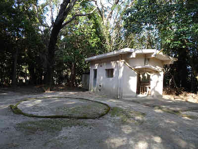 石段を登り玉祖神社に参拝、神社奥に稲荷神社と角力場を過ごせば作業道に出る。作業道を北へ進み、直進と右道の分岐は右道をとる。すぐに巡視路に付けられた黄色の「火の用心」の標識を確認、自然林を眺めながら進むと周囲の植生は竹林に変わる。