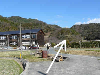 このバス停先を右折し津海木地区に入る。最初の分岐を左折し、沖浦中学校手前の駐車場に車を置いて登山を開始しても良いが、本日は海抜0mからの登山をするため、分岐を直進、次の分岐の右手の広場に車を置く。ここからだと海岸へ下りて海から出発することができる。