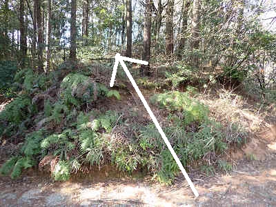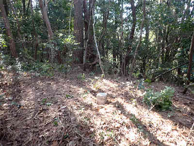 途中で分岐に出会うが、コンクリート舗装の道を辿る。そのまま進むとやがピークに着くので、作業道を離れて左の樹林の中に入ると、すぐに四等三角点の置かれた桧皮浴の頭に着く。周囲の樹林の背が高く、展望を得ることはできない。