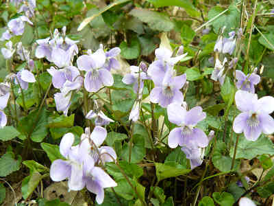 春の花の風景 間もなく左に東持田への分岐を過ごすと、東には三坂山のレーダードームが見えてくる。自然歩道の左に松江農林高校の演習林入口を過ごせば、この先で進路は左へ変わり、大平山へ1.41km・滝空山は「すぐそこ」と案内されている。