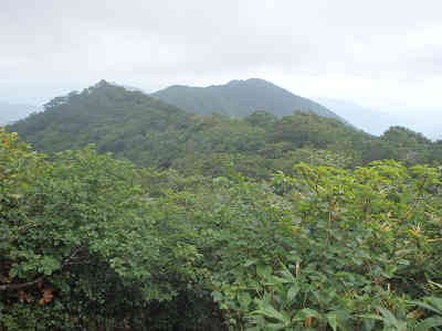 周囲に咲く花を眺めながら進んでいると、親子連れが降りてきたので、山頂までの時間を聞くと、雨のため途中で引き返したとのことだった。やがて鎖のある難所を通過、ここでは大した苦労はなかった。足下に岩が目立ち始め、滑り易くなってきたので慎重に進む。