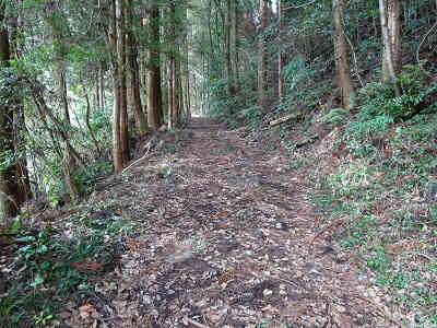 上り、下りともトンネルがあるため、SL撮影には最適な場所なのだろう。仁保駅側へ向かって線路沿いを進むとNO.7の白杭の所から踏跡が続いていた。ここで線路を離れて山道に入る。