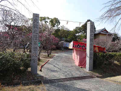 紅白の梅を眺め、梅林の先にこれから登る天神山を眺めて防府天満宮へ参拝。防府天満宮は全国約12000社ある天満宮の中でも最古の天満宮「扶桑菅廟最初」である。道真公が太宰府に流される際、本州最後の寄港地がこの勝間の浦で、「此の地未だ帝土を離れず 願わくは居をこの所に占めん」と願われて太宰府へ向かわれた。