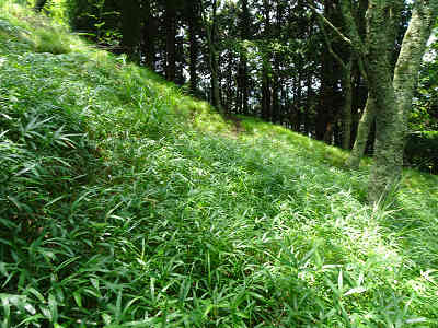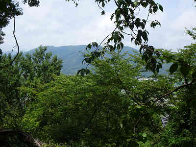 鳥取県百名山では、桜の園と書かれていたが、夏場では新緑の風景が広がっているだけである。更に百名山には。「興味があれば桜の斜面を登り・・・」と、書かれていたので少し上のピークである天満山へ向けて歩いてみた。ところが、先ほど降った雷雨の影響で夏草が濡れており、足下は当然濡れ始め、平坦なピークに着いた頃にはズボンがずぶ濡れになっしまった。