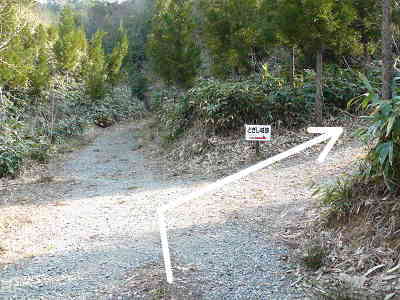 蓮花寺を出発、次は磨石山へ登る。蓮花寺から250m坂を下ったところで、とぎし城跡の案内を確認。平坦な未舗装道を南西方向へ進むと、左には島根県林業公社造林地の案内が立っている。