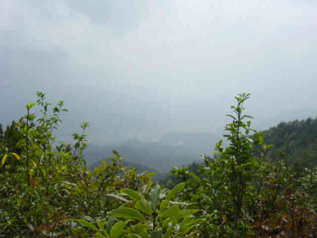 再び藪道の急坂を上り、510mピークを出発して20分で鷲か嶽に到着した。鷲か嶽山頂は二等三角点が尾根道の横に立っているだけのシンプルな山頂だった。鷲か嶽からは徳地町の街並みを遠望することができるが、生憎と本日は靄がかかっており、展望が台無しとなっていた。鷲か嶽の三角点に腰を降ろして食事をした後、下山を開始した。