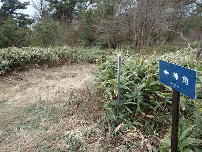 更に登山道は急斜面であり、足下は砂利や岩が多いため、スリップしないよう注意も必要である。尾根へ出れば進路を左方向に採り、眼下に神角方面の田園風景を眺めながら高度を上げる。足下の笹がきれいに刈られているが、これは昨年(平成25年)9月23日に北浦自然観察会の皆さんにより笹刈が実施されたおかげである。