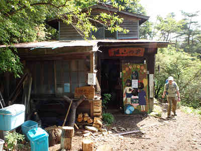 間もなく観音茶屋の前を過ごすが、時刻は午前7時半なので、まだ空いていない。この地点は塔ノ岳へ5.4km、大倉バス停からは1.6km地点である。植林帯の下、ジグザグを描きながら高度を上げると、直進方向に「大観望へ500m」と案内されている。この道を採れば、「大倉高原山の家」経由で塔ノ岳へ着くようだが、ここでは右方向の近道を採り、大観望には下山時に立ち寄ることにする。