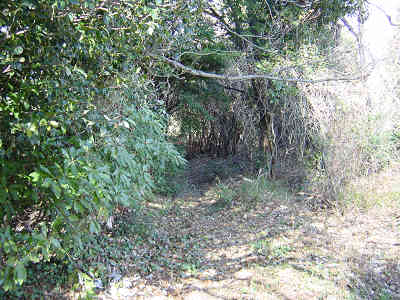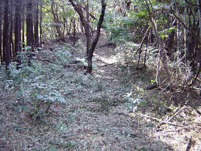 山頂には旧日本軍の遺構が残っている 下山は往路を引き返すのだが、登りで急斜面だったこの山から、下りるのはあっという間である。山頂から白木権現まで8分、白木権現から大鳥居までは10分、大鳥居から登山口までは7分、合計下山時間は25分だった。